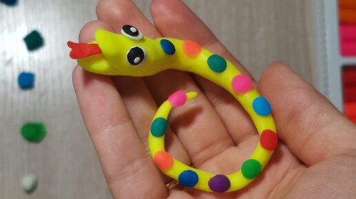 Лепим из пластилина. Разноцветная змея. Поделки с детьми
