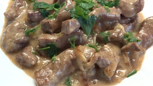 Такая печень говяжья со сметаной и луком получается всегда вкусно! Даже гарнир не нужен (секреты приготовления)