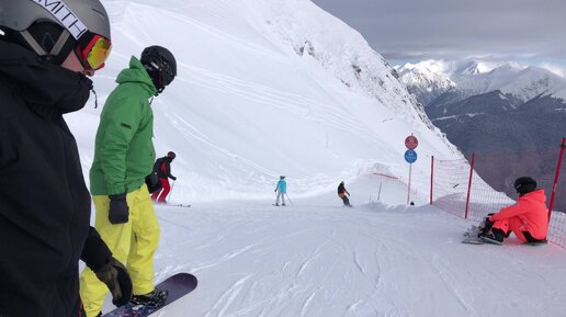 Спуск сверху донизу по Обер Хутор, утро 02.03