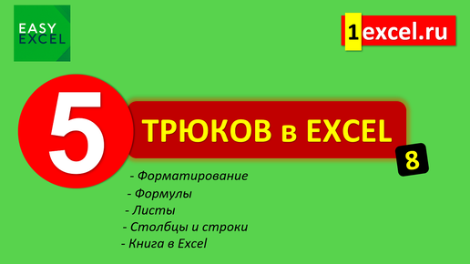 5 трюков в Excel. Горячие клавиши. Форматирование. Формулы. Листы. Книга в Excel. Часть 8