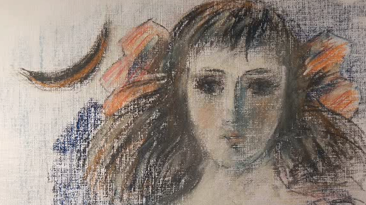 Рисуем девочку с бантиками под чёрным месяцем.
