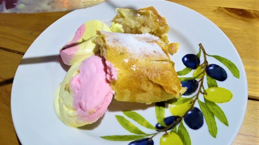 Быстрый рецепт самого вкусного штруделя. Десерт подается с мороженым.