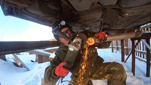ПРИВАРКА НОВОГО ФЛАНЦА НА РЕЗОНАТОР. Ремонтирую не снимая с машины. ЛАДА КАЛИНА