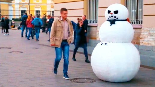 ЗЛОЙ СНЕГОВИК пугает людей на улице / Приколы над людьми
