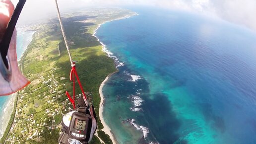 Прыжок с парашютом в Гваделупе с 3000 метров и приземление на красивый пляж, где нас встречали девушки