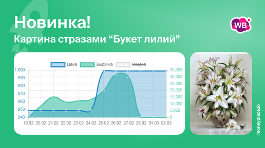 Продажи картины-мозаики стразами "Букет лилий" на Wildberries. Анализ маркетплейса