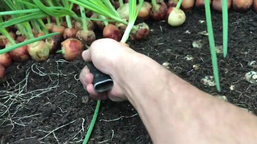 Нож для нарезки зеленого лука с грядок. Лук на перо..mp4