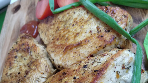 Муж готовит стейки из индейки. Нежное и очень сочное мясо.