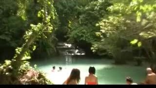 Водопад в Лаосе - нежно голубой цвет