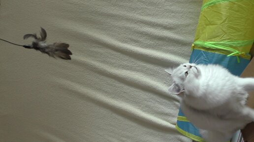 Кот Мишка ловит игрушку