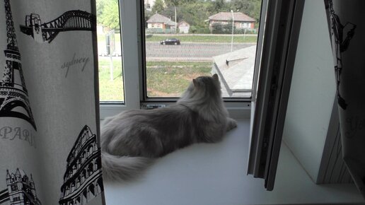 Кот смотрит на птиц за окном