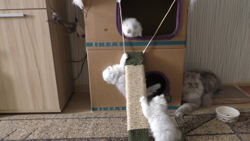 Котята играют в домике и коготочке