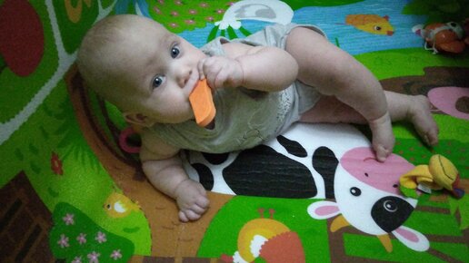 Первый зубик! Сегодня вылез первый зубик! Очень устала.