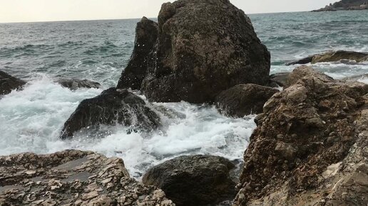 Шторм у заповедника мыс Айя. Купание в шторм среди камней 5 марта