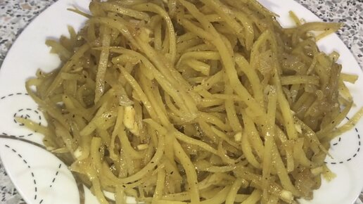 Салат по- корейски из картофеля. Вкус у салата получается очень необычным, а самое главное вкусным.