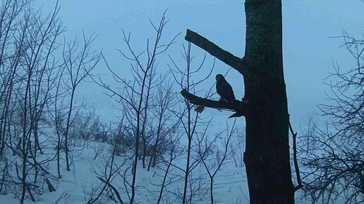 Лесные круки и канюк. Конкуренция за мясо.
