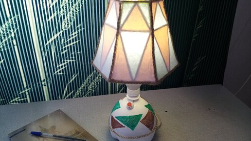 Абажюр из пластиковой тары, шампуров и бумаги
