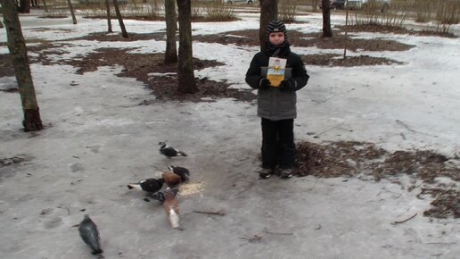 Биосфера. Холодная, ветренная весна. Кормушки пернатым друзьям ещё нужны... Принесли смесь " 5 злаков", едят...
