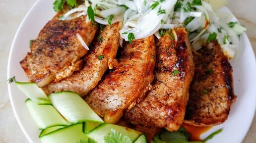 Праздничный стейк по - цыгански. Стейк на сковороде, цыганка готовит.