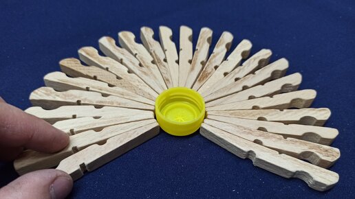 Сделал из деревянных прищепок красивую подставку для горячих кастрюль и чайников