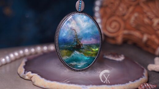Рисую копию с картины Айвазовского на перламутре, в старинной технике