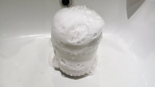 3 вида шампуня и пену для бритья размешиваю в одной ёмкости, и добавляю 2 ингредиента. Наблюдаем за пенным извержением.