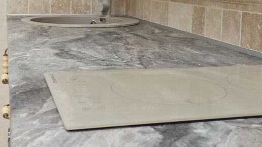 Фартук из травертина затирается белым клеем