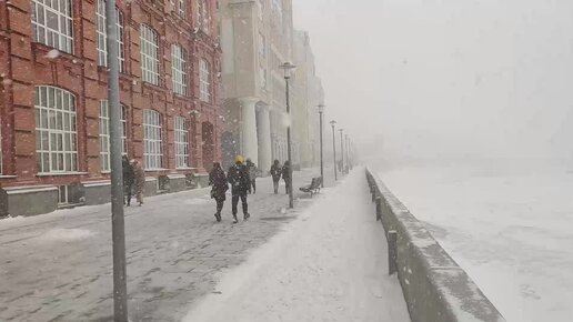 Весенний снегопад в Москве. Якиманская набережная