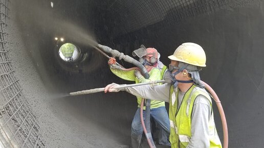 Торкретирование сухим способом ручным и полуавтоматическим набрызгом торкрет-бетона.