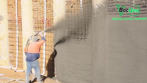 Торкретирование мокрым способом с ручным набрызгом торкрет-бетона сопловиками.