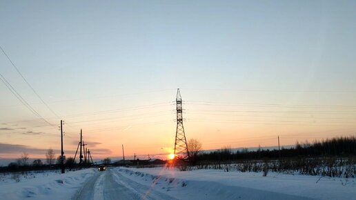 Прекрасный закат, вечерняя дорога