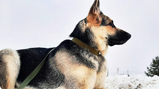 Пес собрался на сугроб и гордо обозревает окружающий мир с высоты