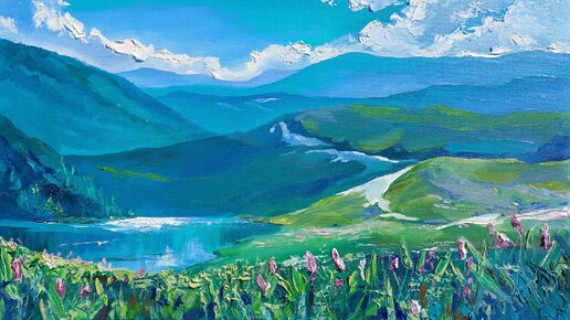 Рисуем просто Горы с озером / Саяны / Пошаговая картина маслом
