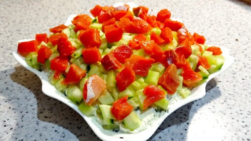 Увидела интересный рецепт салата с красной рыбой. Попробовала приготовить, делюсь рецептом.