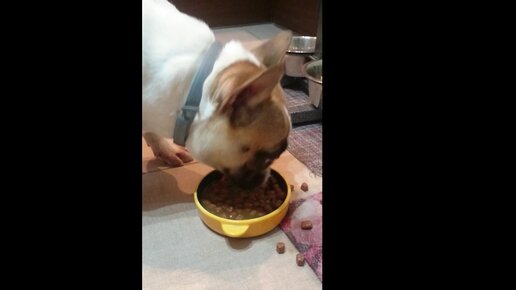 Влажный корм для собак MONGE: французский бульдог и кошка едят из одной миски!