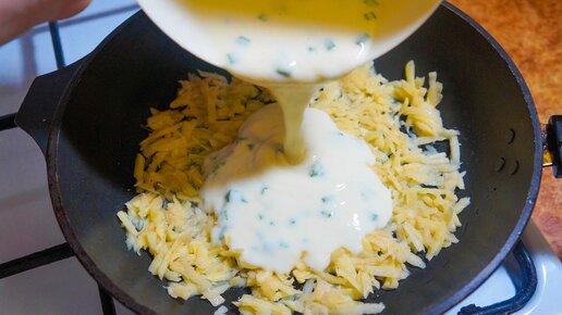 Беру картошку, яйцо, кефир и пока все спят готовлю простой сытный завтрак на сковороде.