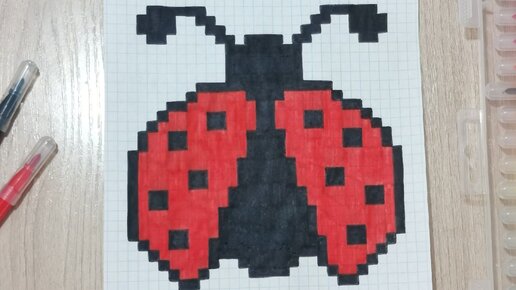 Рисуем по клеточкам. Божья коровка. Пиксель арт для детей