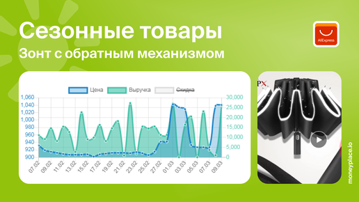 Продажи зонта с обратным механизмом на Aliexpress. Анализ маркетплейса