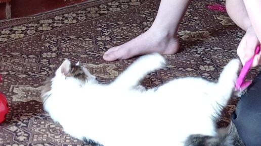 Наш кот Компот распушился . Его чешешь, а он играет.