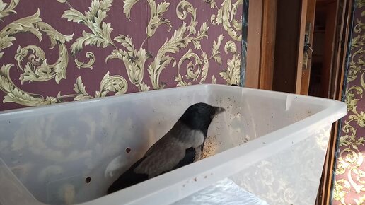 Молоденький воронёнок стесняется идти знакомиться с постоянными обитателями Дома Хвостиков