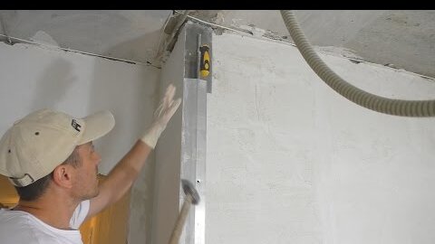 Формирование внешнего угла при штукатурке стен гипсовым составом Работа с рейками!
