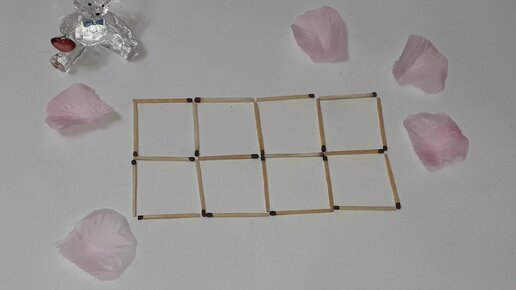 Показываю как убрать 4 спички и оставить 5 равных квадратов
