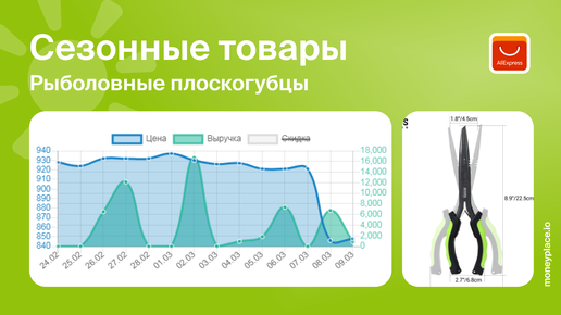 Продажи плоскогубцев для рыбалки на Aliexpress. Анализ маркетплейса