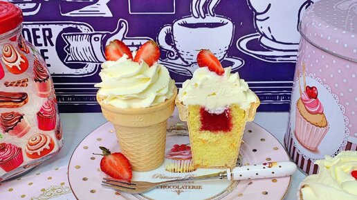 Капкейки в вафельных стаканчиках, от них будут в восторге не только дети, но и взрослые!
