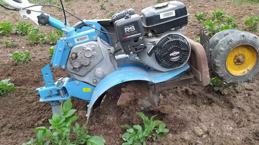 Роторный окучник в работе.