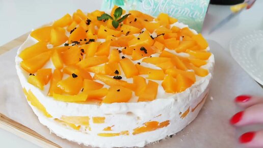 Чизкейк без выпечки с творожным сыром и персиком. Вкусный десерт для сброса веса