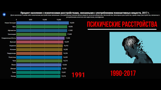 Процент людей с психическими расстройствами. Инфографика по странам.