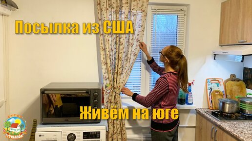#142 Получили посылку из США. Повесили штору и жалюзи на окно в кухне.