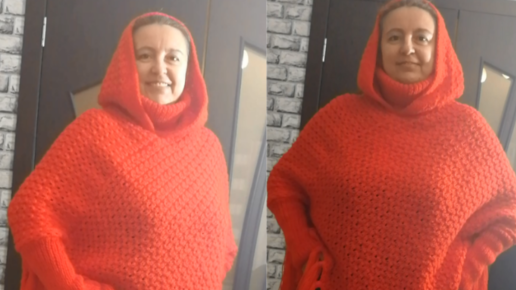 Вязаное пончо с капюшоном. Порадовала себя любимую. Мастер класс