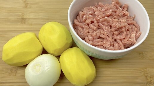 Беру фарш, картофель и луковицу и готовлю вкусный ужин.